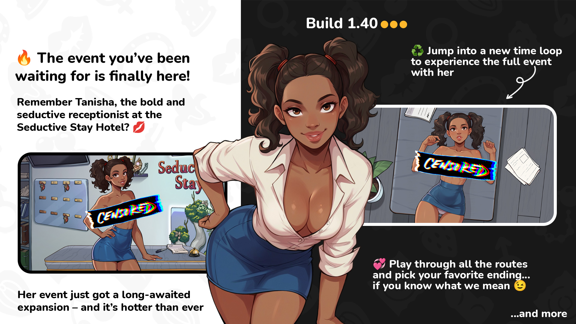 Her story now gets a steamy conclusion with multiple possible endings, including a full version of the passionate scene right at her workplace. It’s up to you to decide how it all ends.